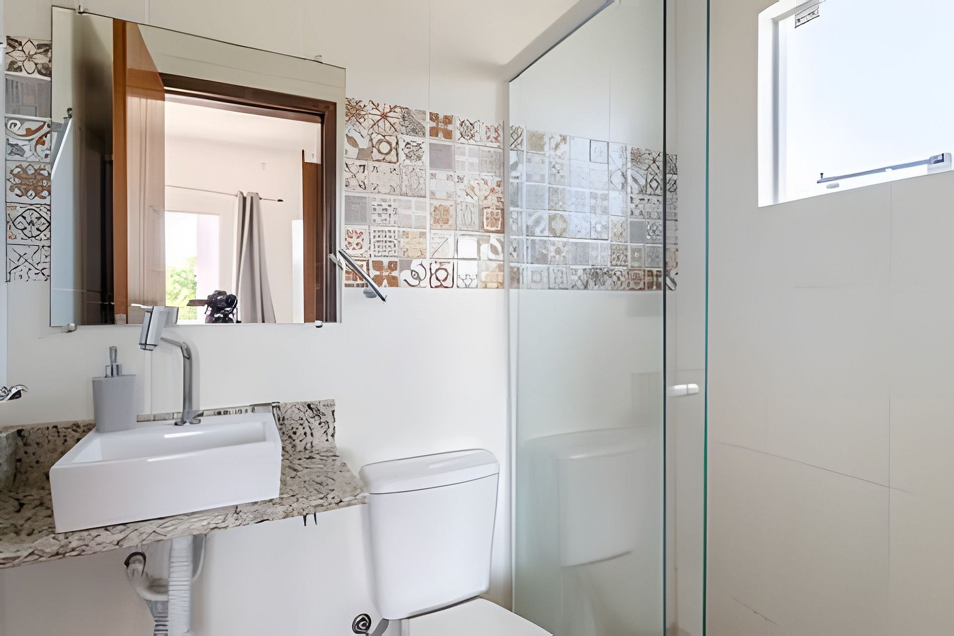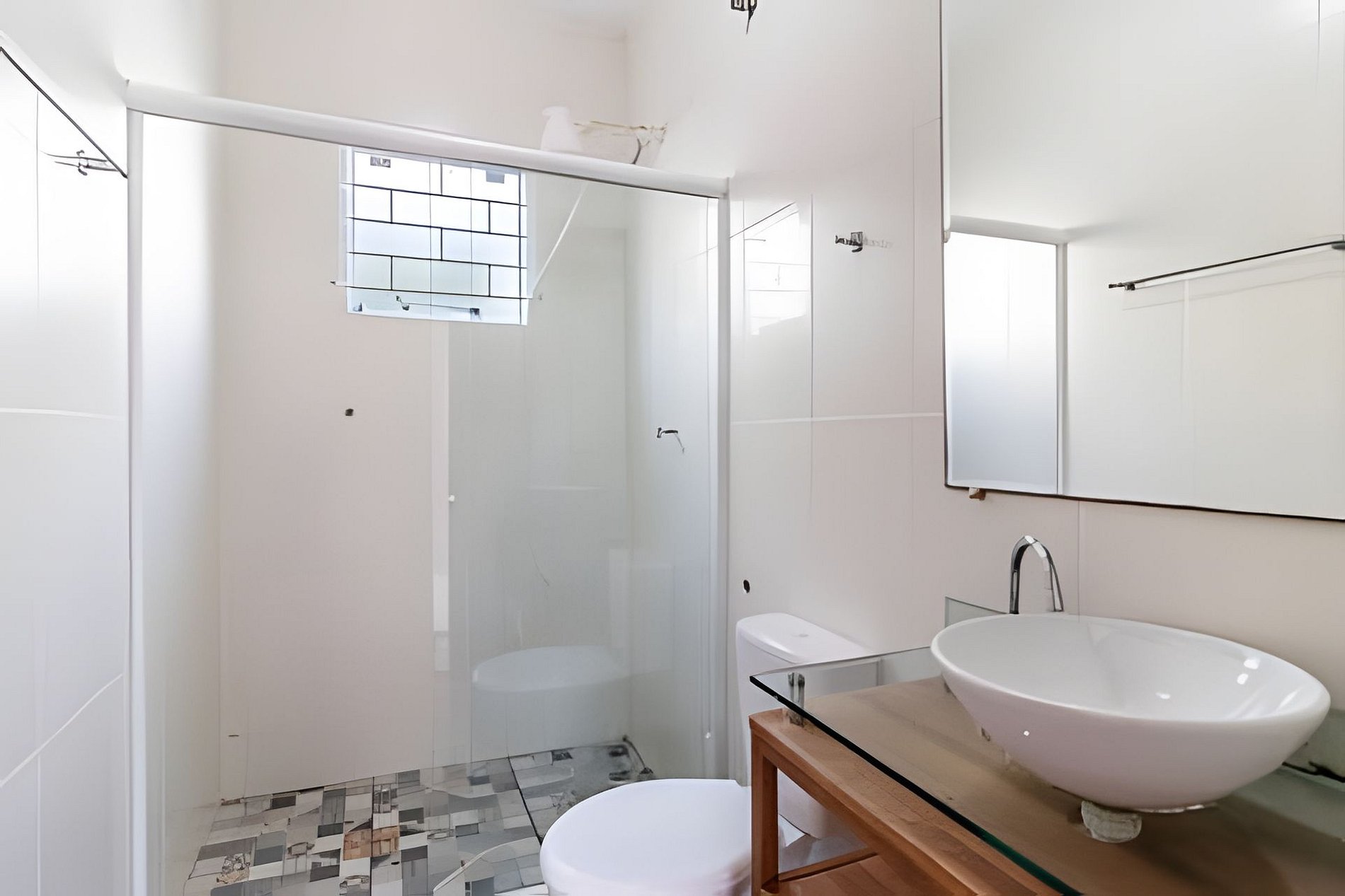 - Banheiro: três banheiros com chuveiro (elétrico);