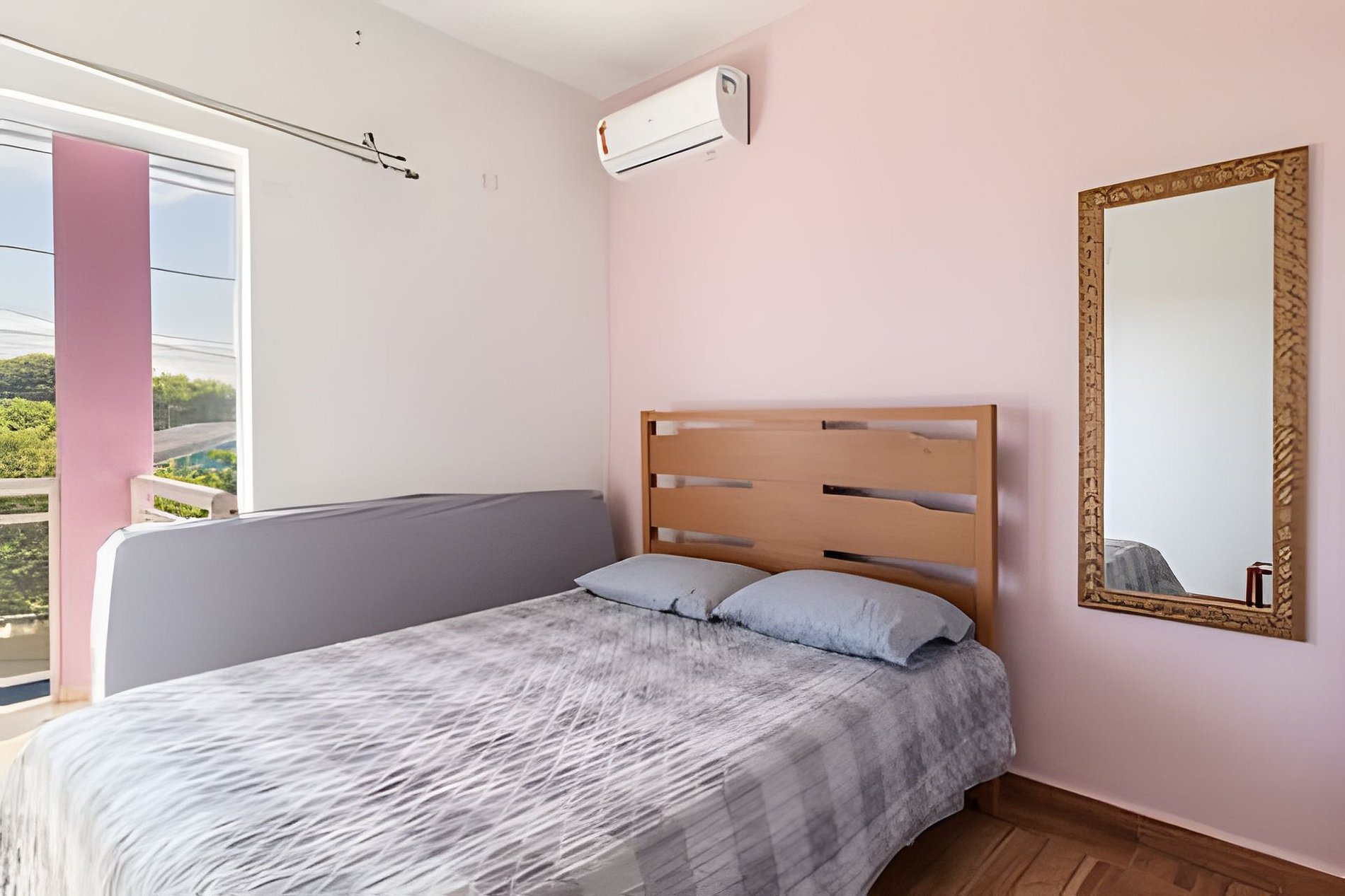 - Quarto 3: uma cama de casal, ar condicionado e armário;