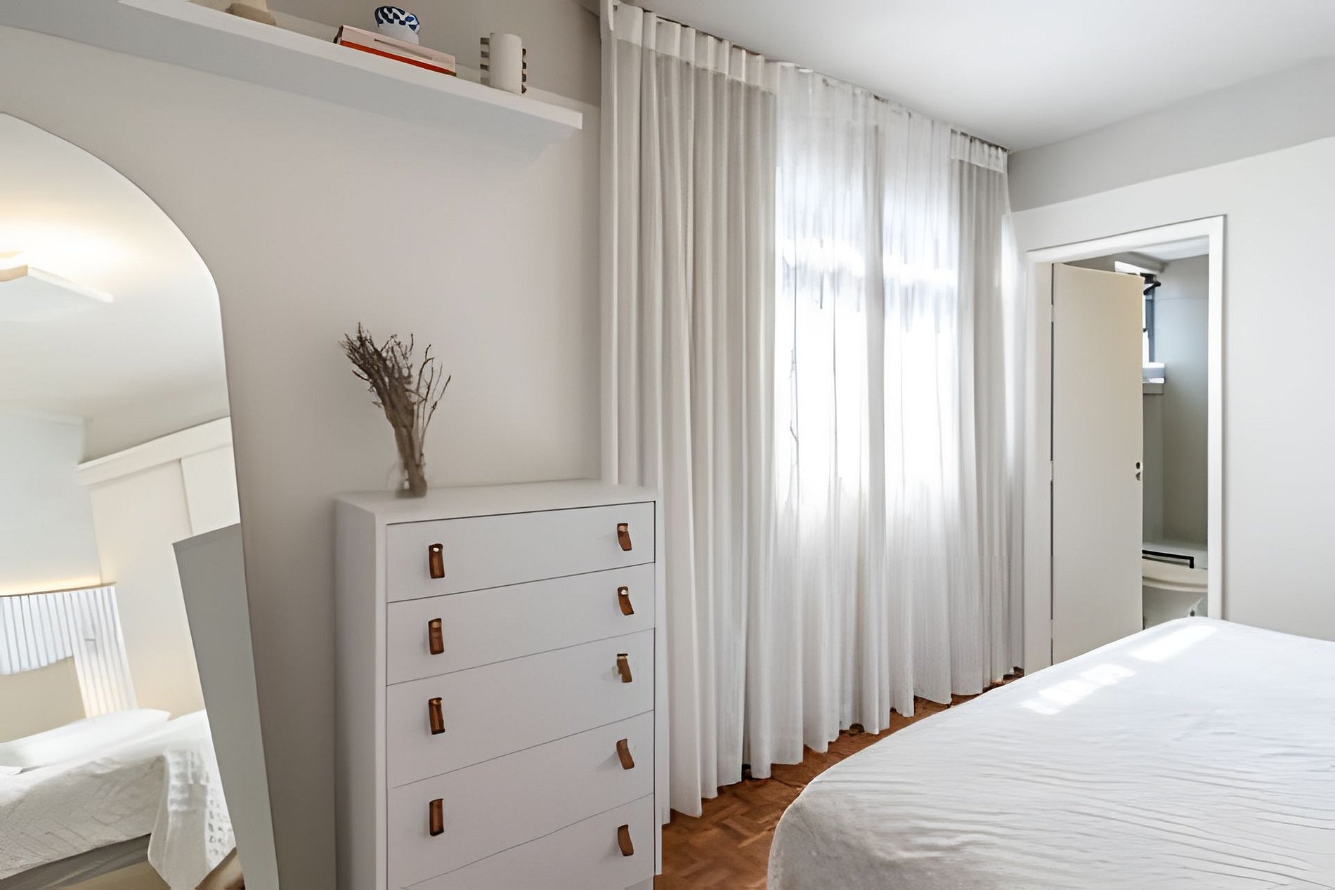 ► Check-in: 13h às 19h ◄ ► Check-out: 08h às 11h ◄ *Consulte disponibilidade e taxas para horários especiais! Localização: - Bairro/Cidade: Rebouças, Curitiba/PR - Shopping Curitiba: 950 m - Panificadora: 300 m - Supermercado Condor: 1,1 km - Centro da cidade: 2,6 km Apartamento - Andar: 2º (acesso por escadas); - Sala de Estar: sofá com cinco lugares e TV Smart; - Sala de Jantar: mesa com quatro lugares e adega; - Cozinha: geladeira, fogão, forno, lava louças, microondas e utensílios; - Quarto 1 (suíte): uma cama king e closet; - Quarto 2: uma cama de casal, armário, escrivaninha e cadeira; - Quarto 3: uma cama de solteiro, armário, escrivaninha e cadeira; - Lavanderia: máquina lava & seca, varal e tanque; - Banheiro (suíte): chuveiro elétrico e aquecedor de toalhas; - Banheiro 2: chuveiro elétrico e banheira (s/ hidro); - Estacionamento: não disponibilizamos; - Roupas de cama: lençol, sobre lençol, fronhas, travesseiros, edredom e mantinha; - Toalhas: uma toalha de banho por hóspede e uma de rosto por banheiro; - Troca de enxoval: não realizamos a troca de roupas de cama e toalhas durante a estadia.