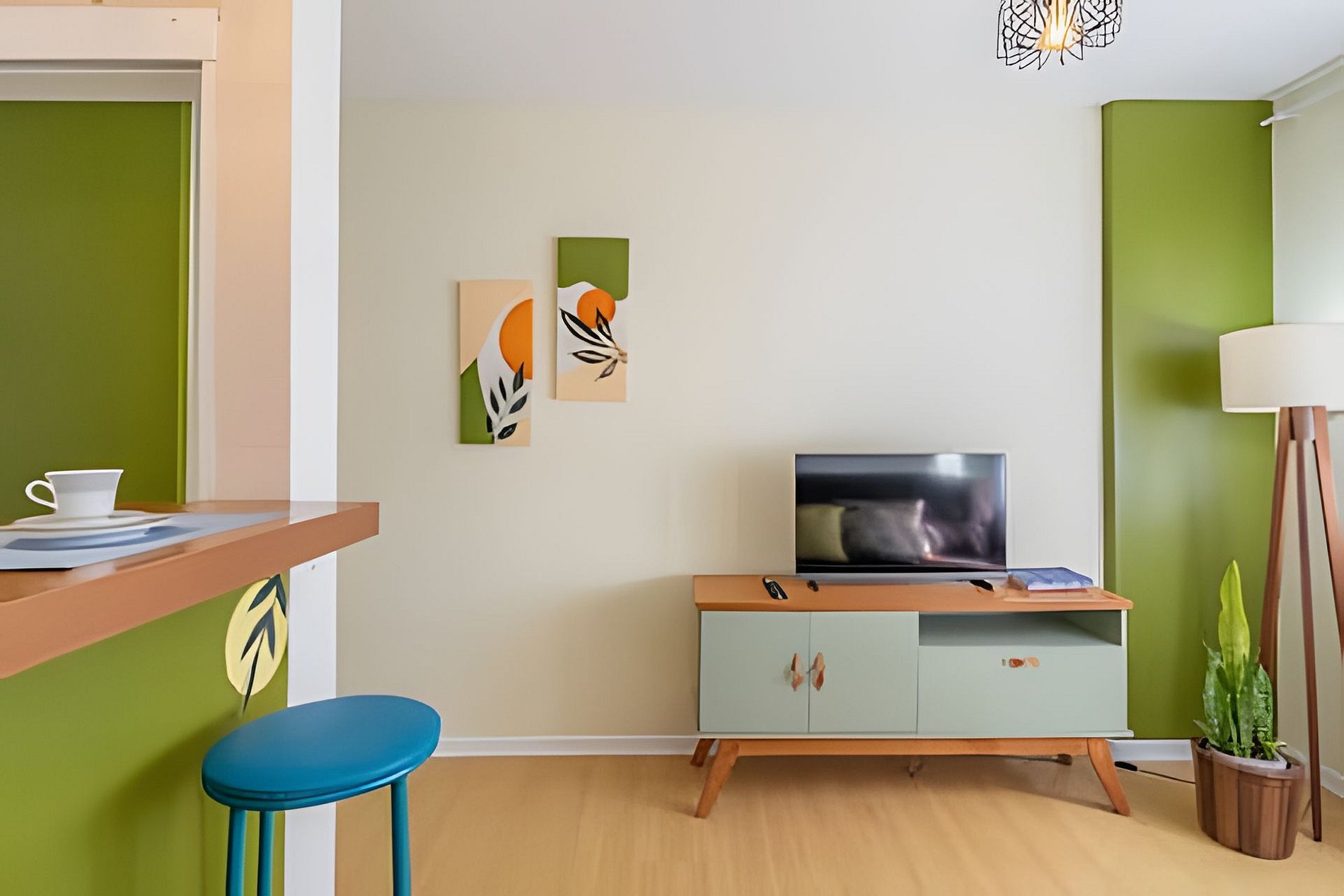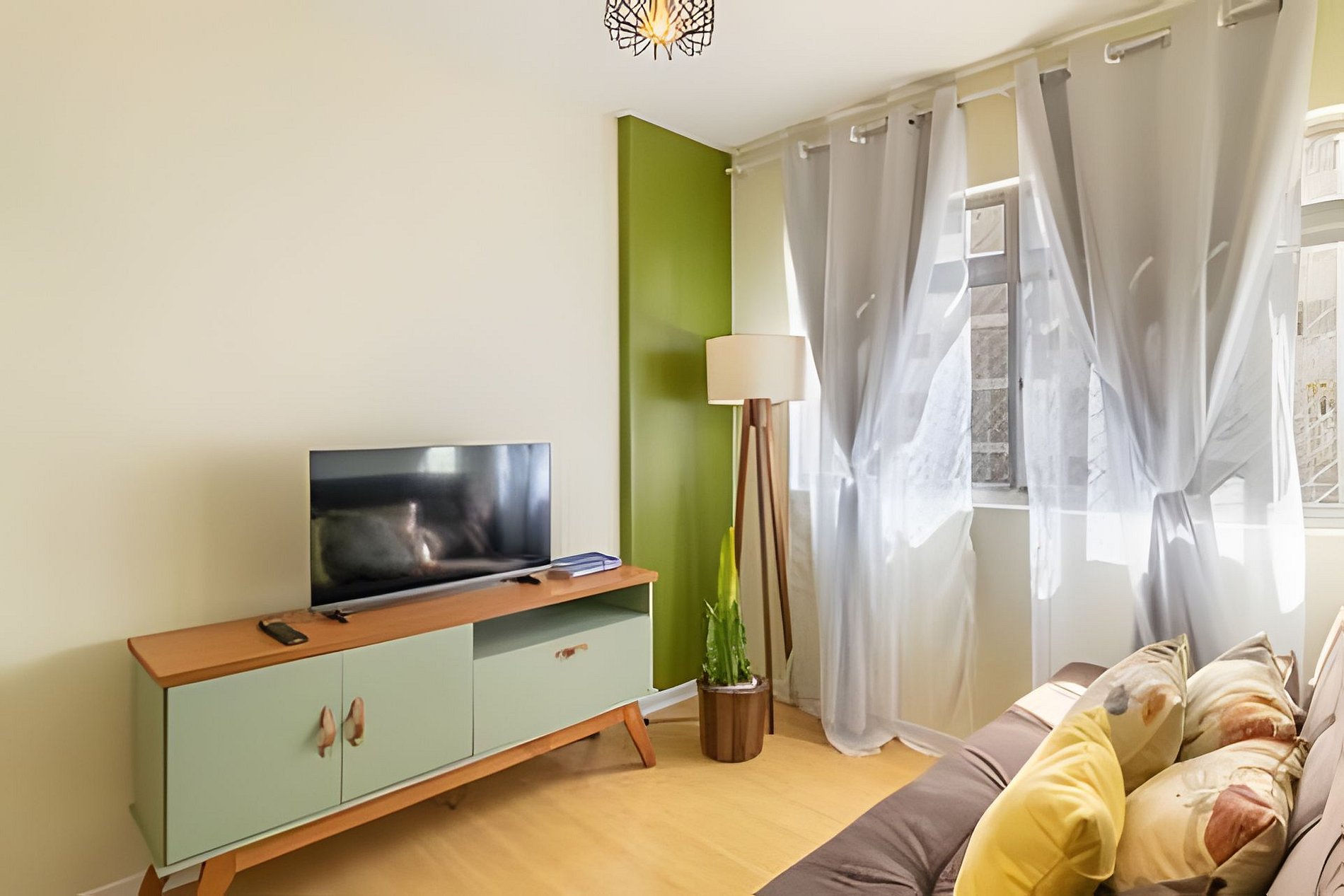 - Sala de estar: sofá cama e Tv Smart;