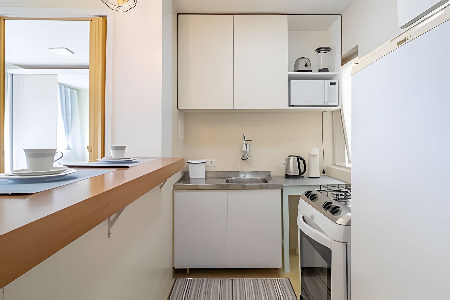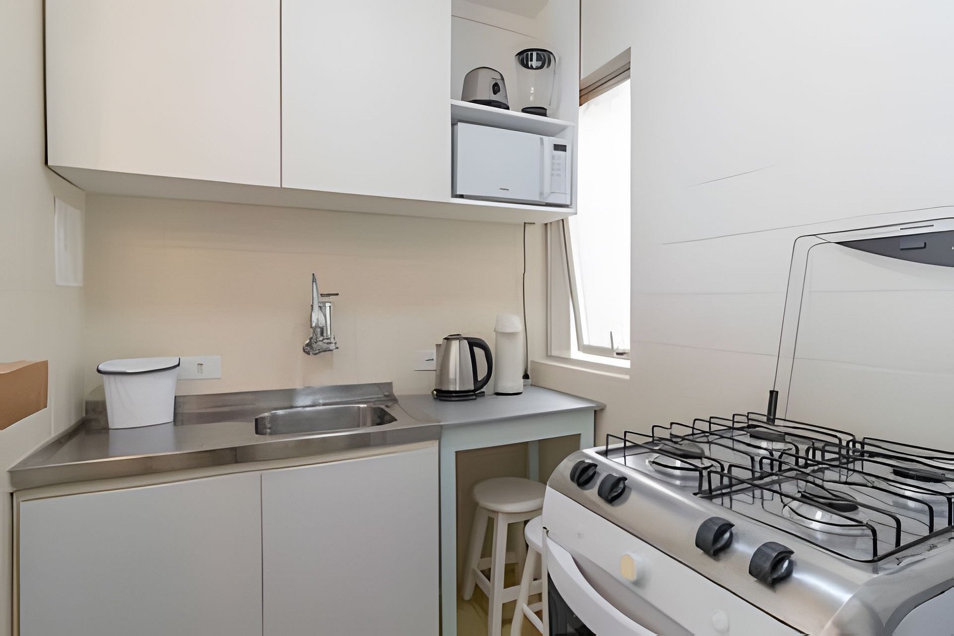 - Cozinha: geladeira, fogão, forno, microondas e utensílios;