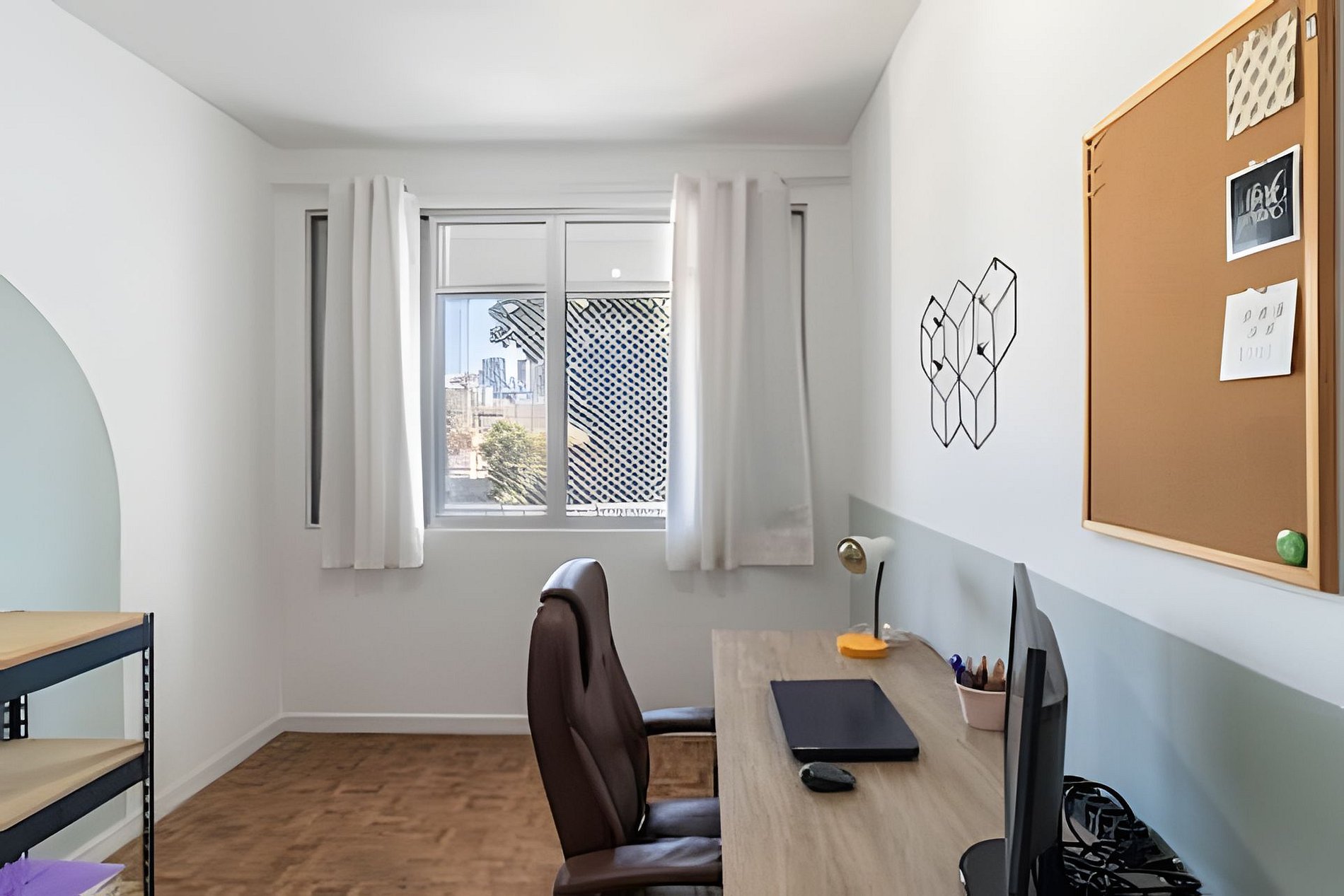 Fique hospedado em nosso apartamento super descolado localizado em um bairro central repleto de bares, restaurantes e shoppings. Ao lado da Ligga Arena! Curta jogos e shows sem precisar de Uber/Taxi! Vai precisar trabalhar? Nosso apartamento tem um escritório exclusivo!! ➢ Aceitamos PETs, tá? Gostou? Adicione à sua lista de favoritos clicando no canto superior direito. Acomodação selecionada pela Super Vou Hospedagens!