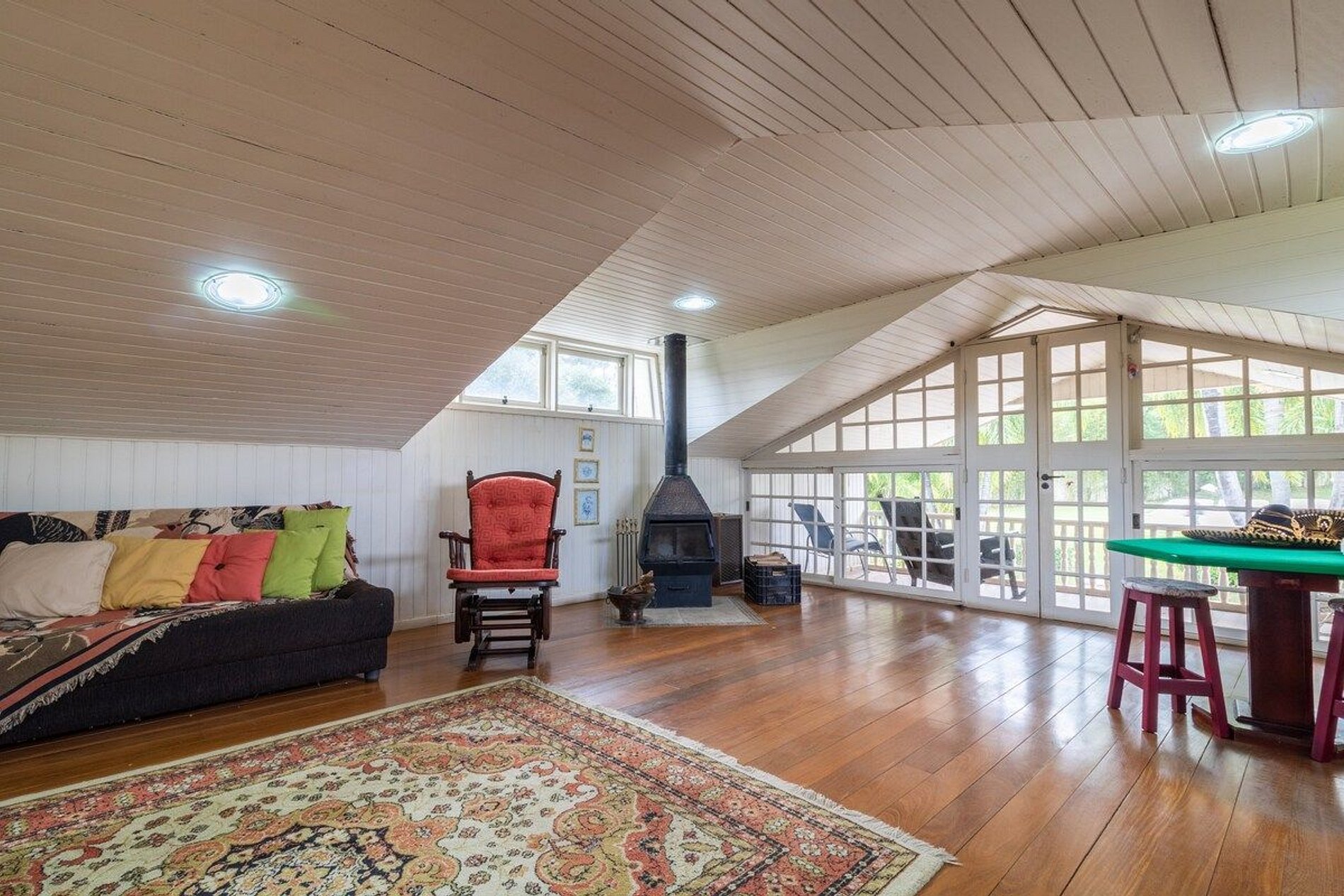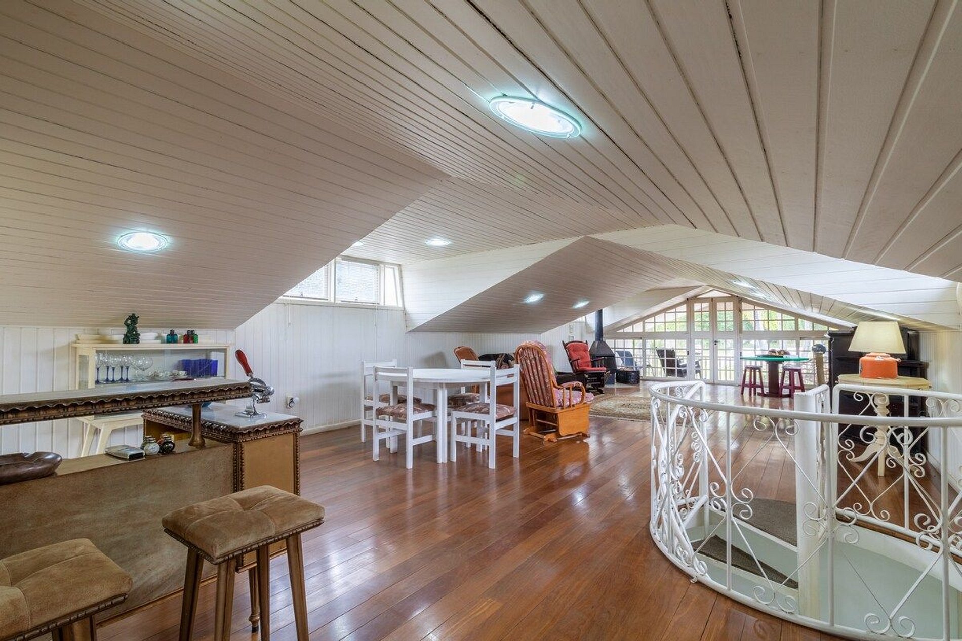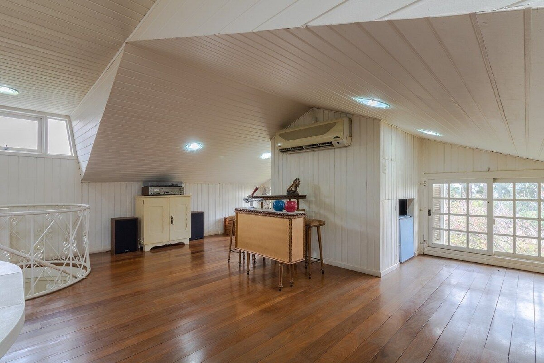 - Sotão: mesa para jogar cartas, lareira, sofá e TV;
