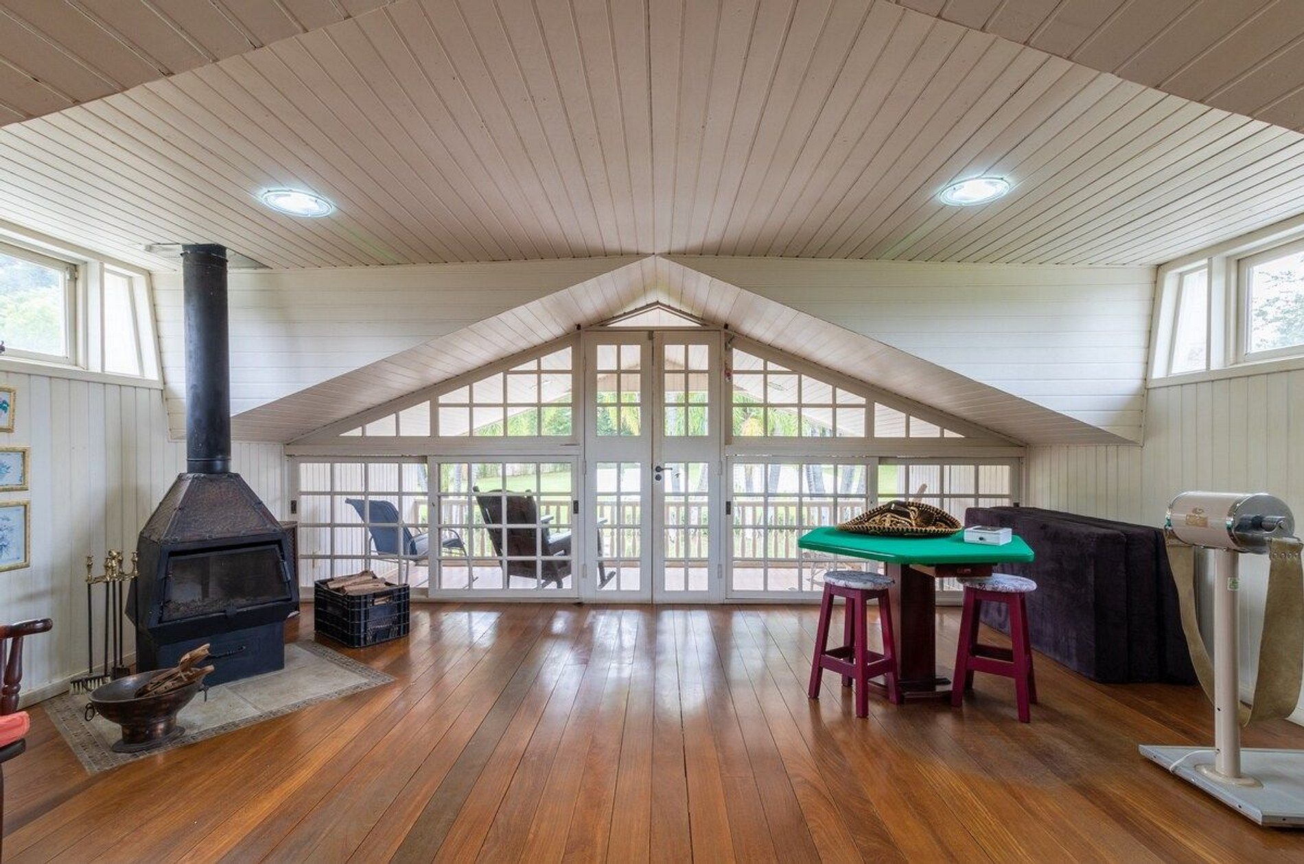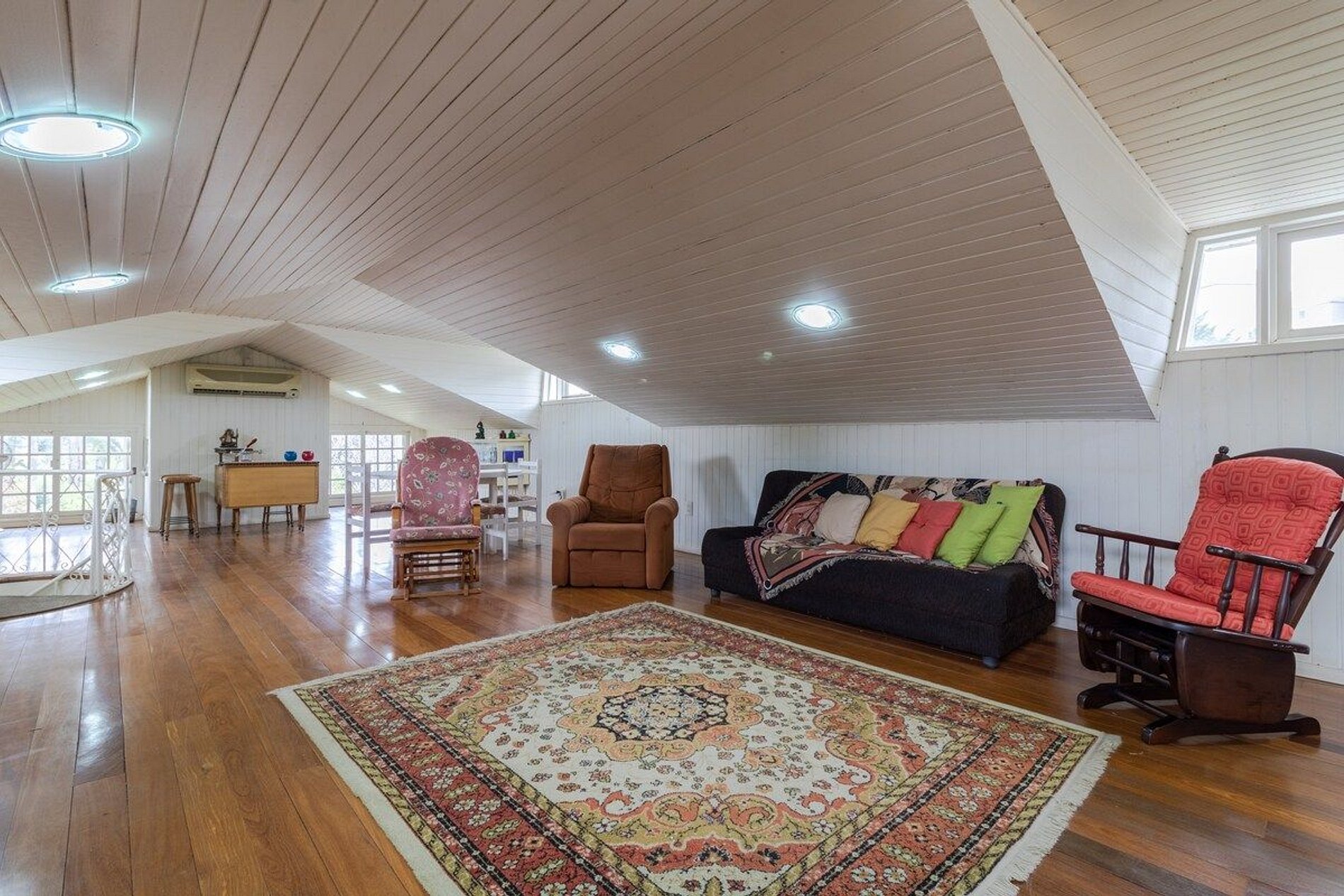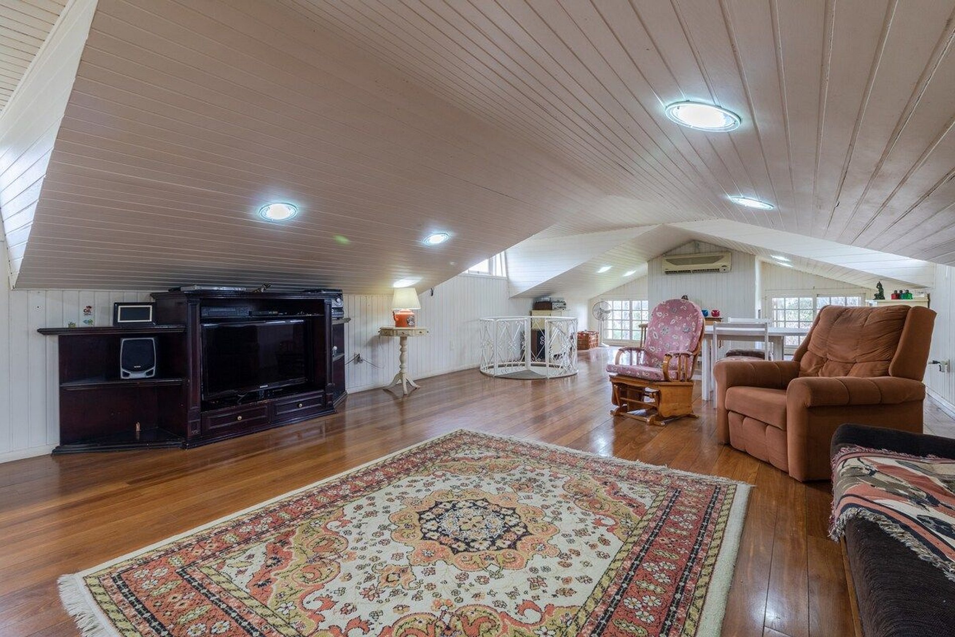 - Sotão: mesa para jogar cartas, lareira, sofá e TV;