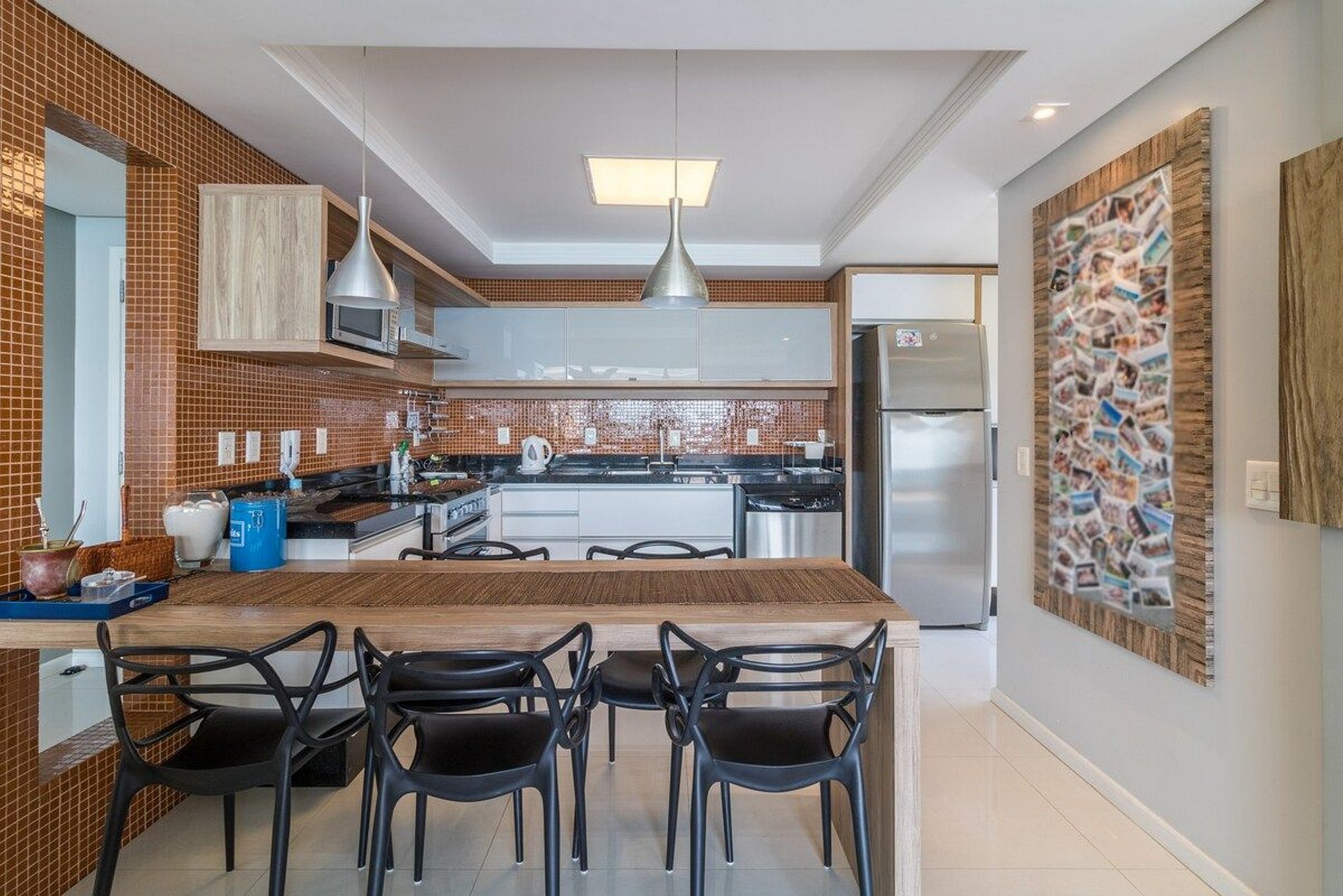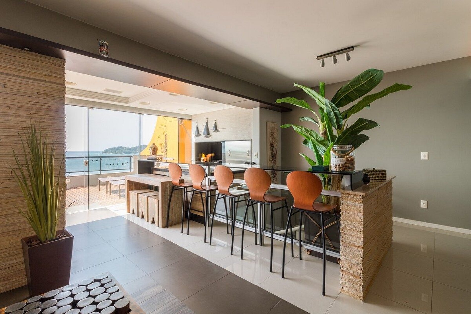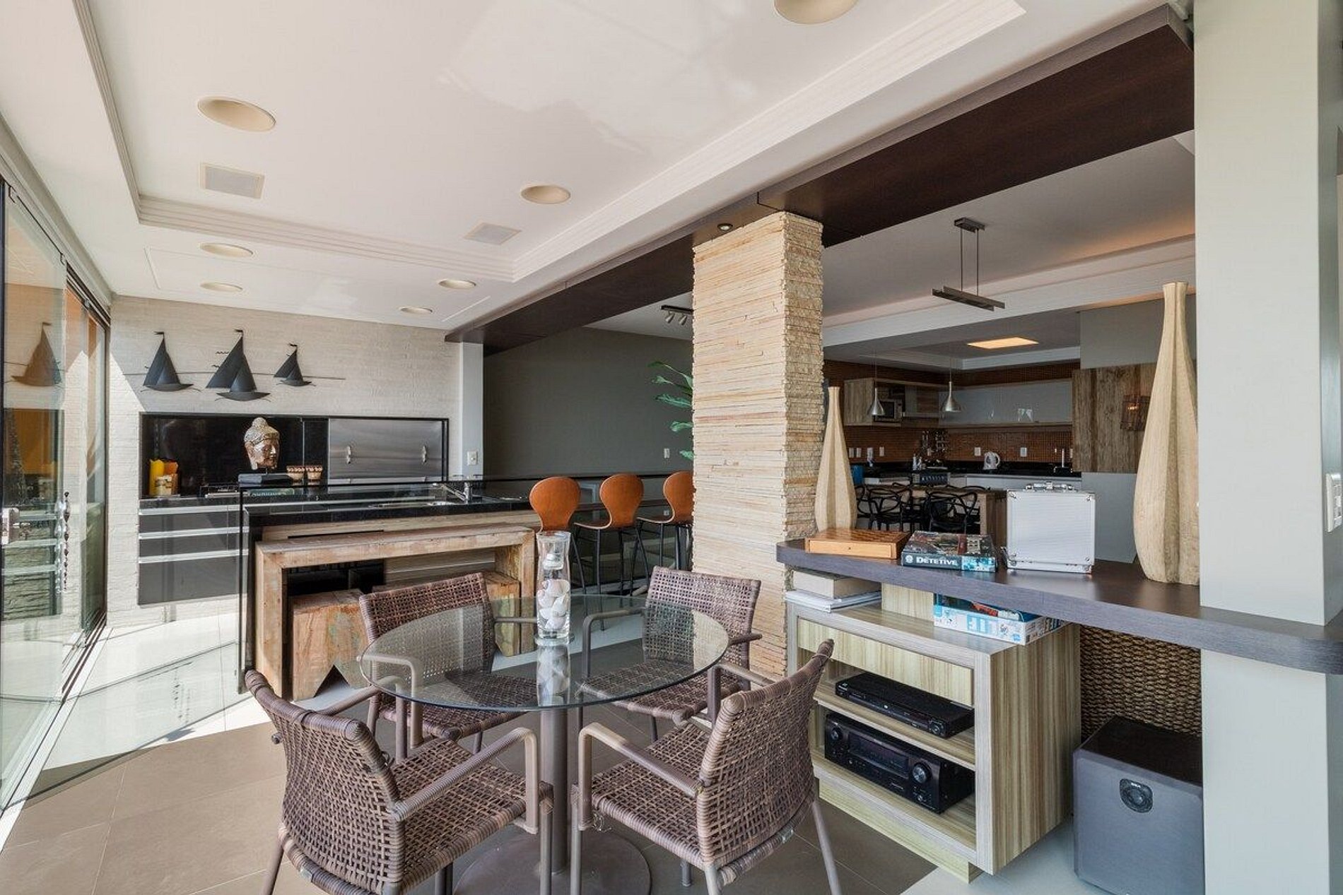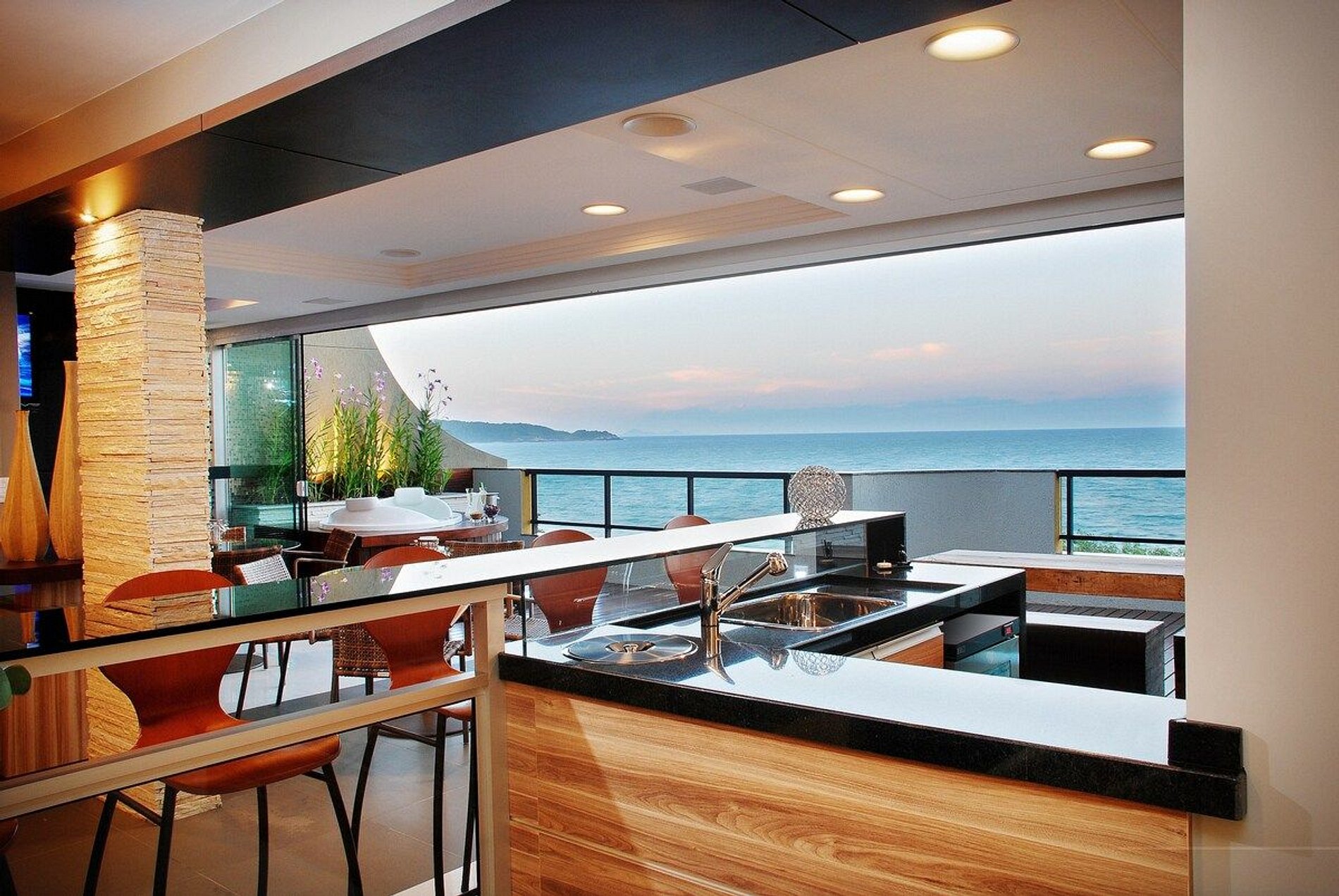 - Cozinha Gourmet: bancada com cinco lugares, churrasqueira, fogão e frigobar;