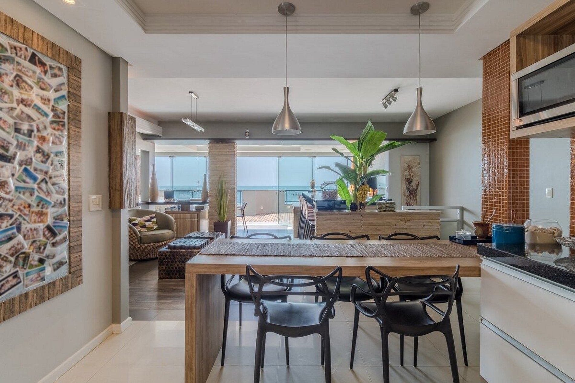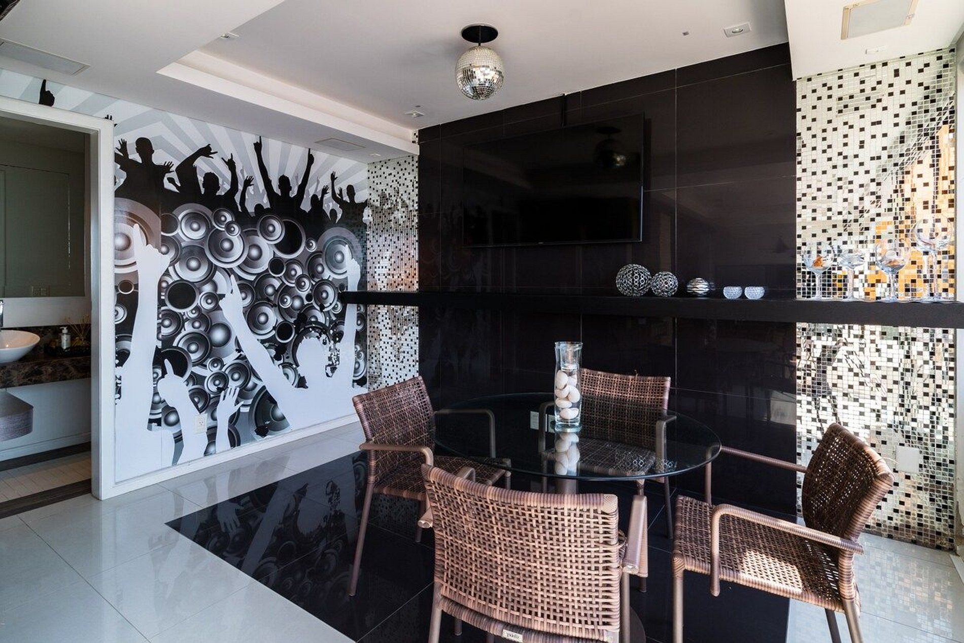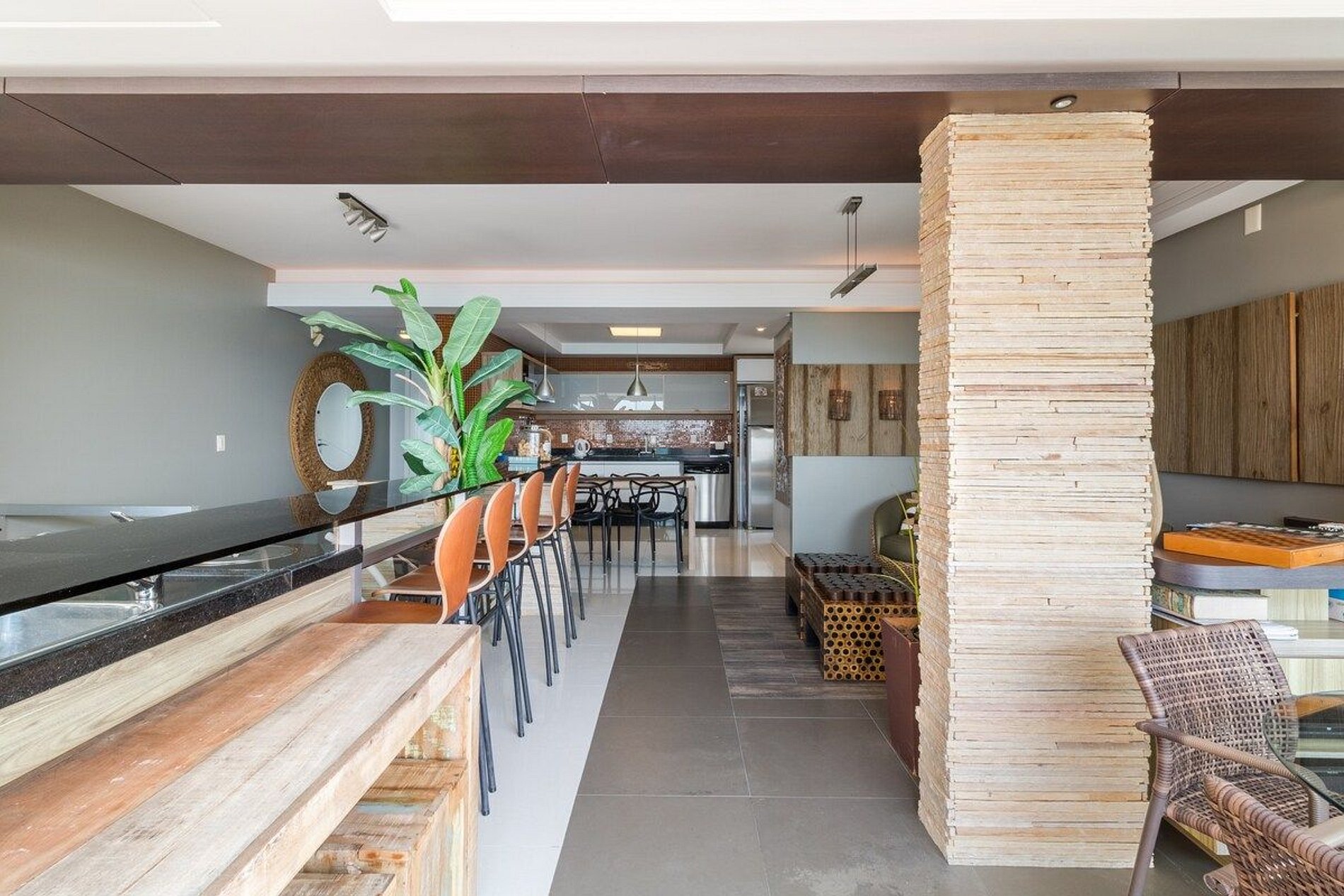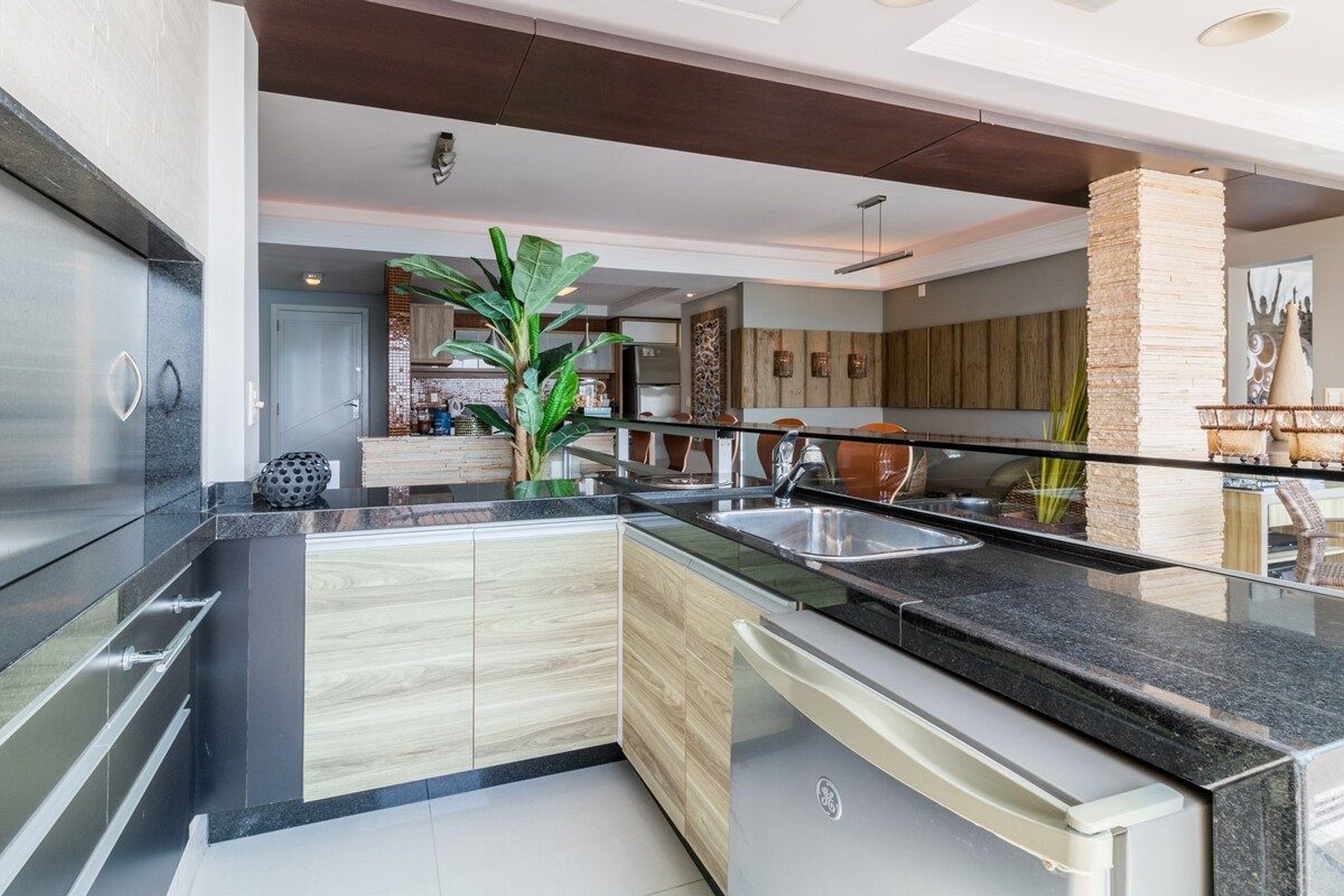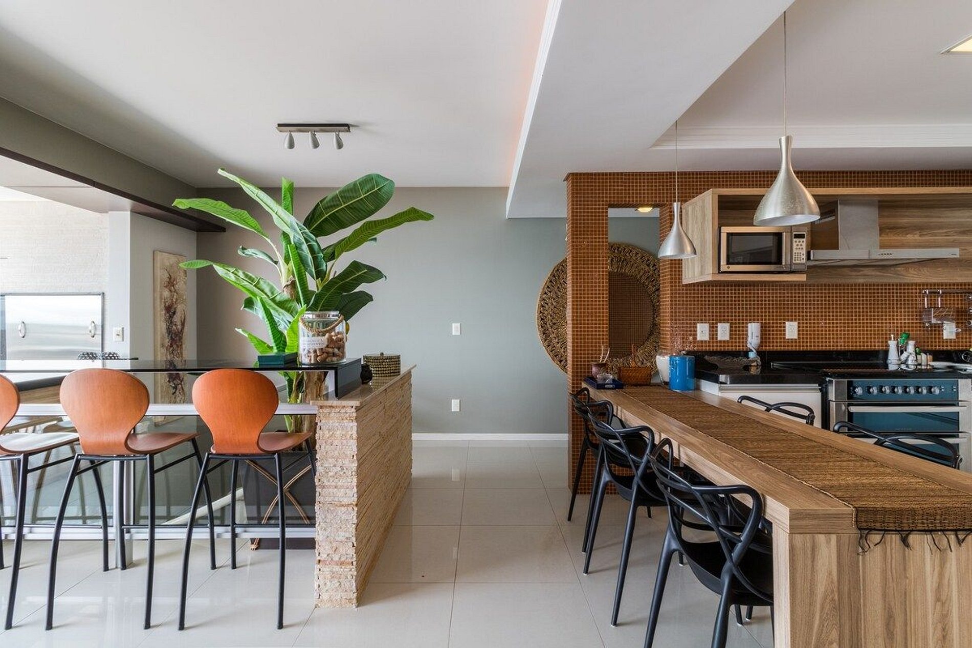- Cozinha Gourmet: bancada com cinco lugares, churrasqueira, fogão e frigobar;