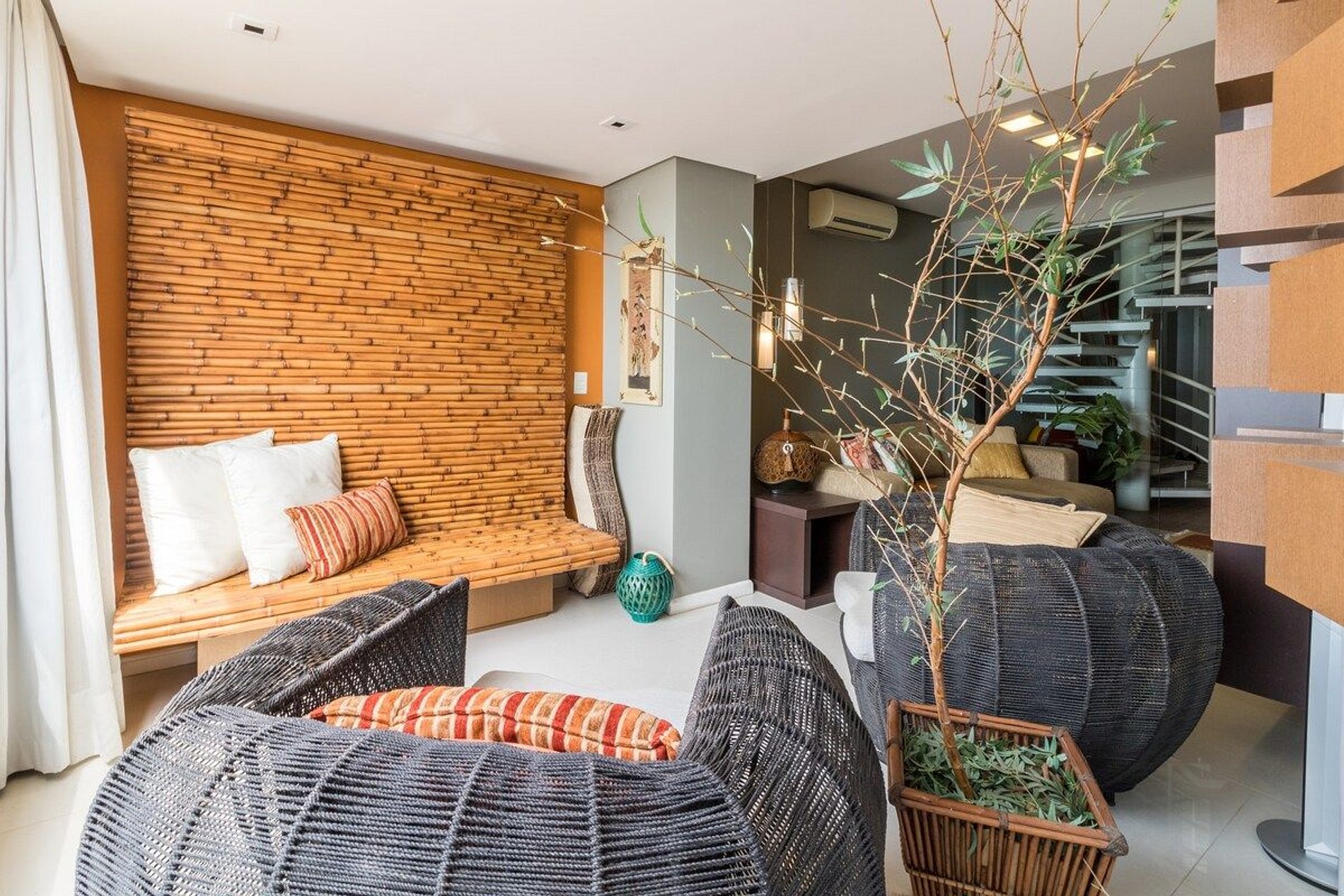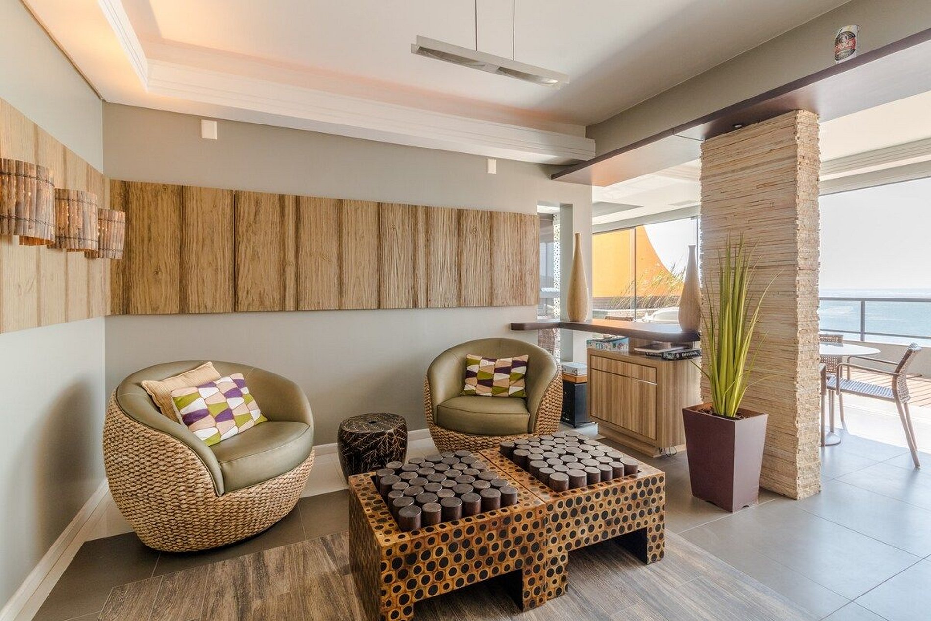- Sala de Estar (Cobertura): sofás, TV smart, mesas e cadeiras;