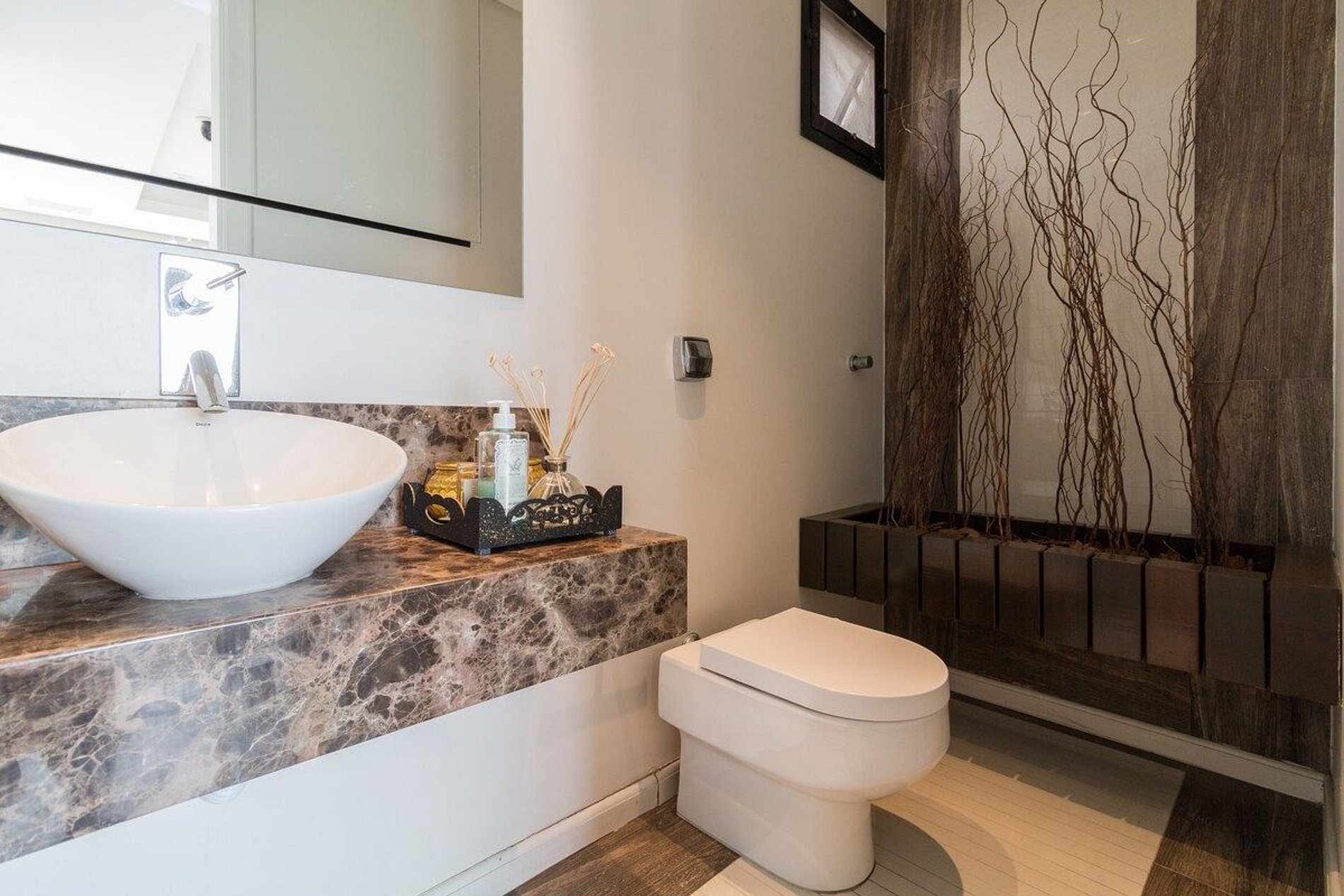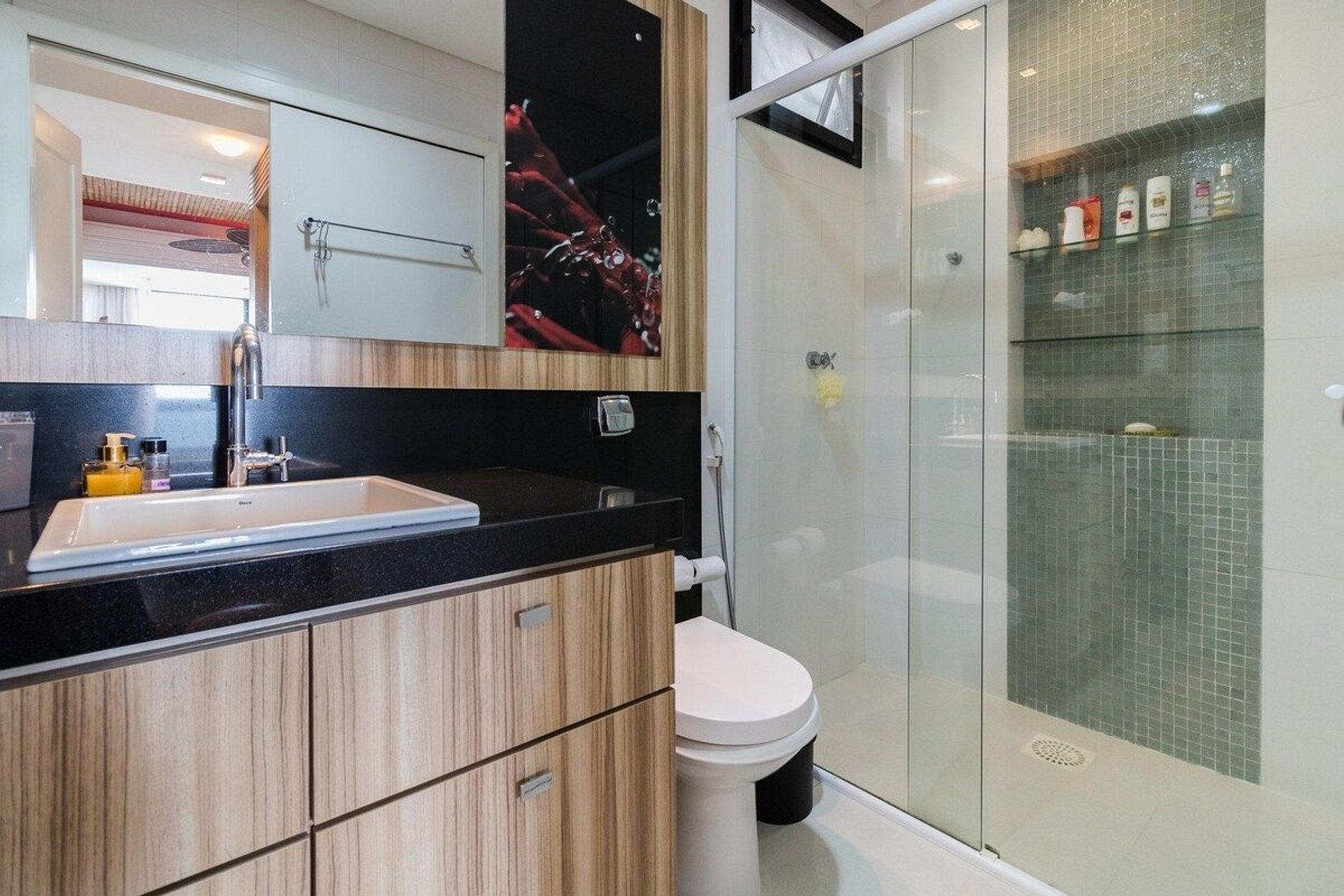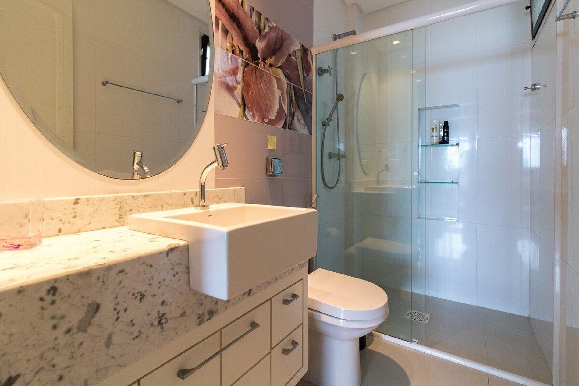 - Banheiros: três banheiros com chuveiro e um lavabo;