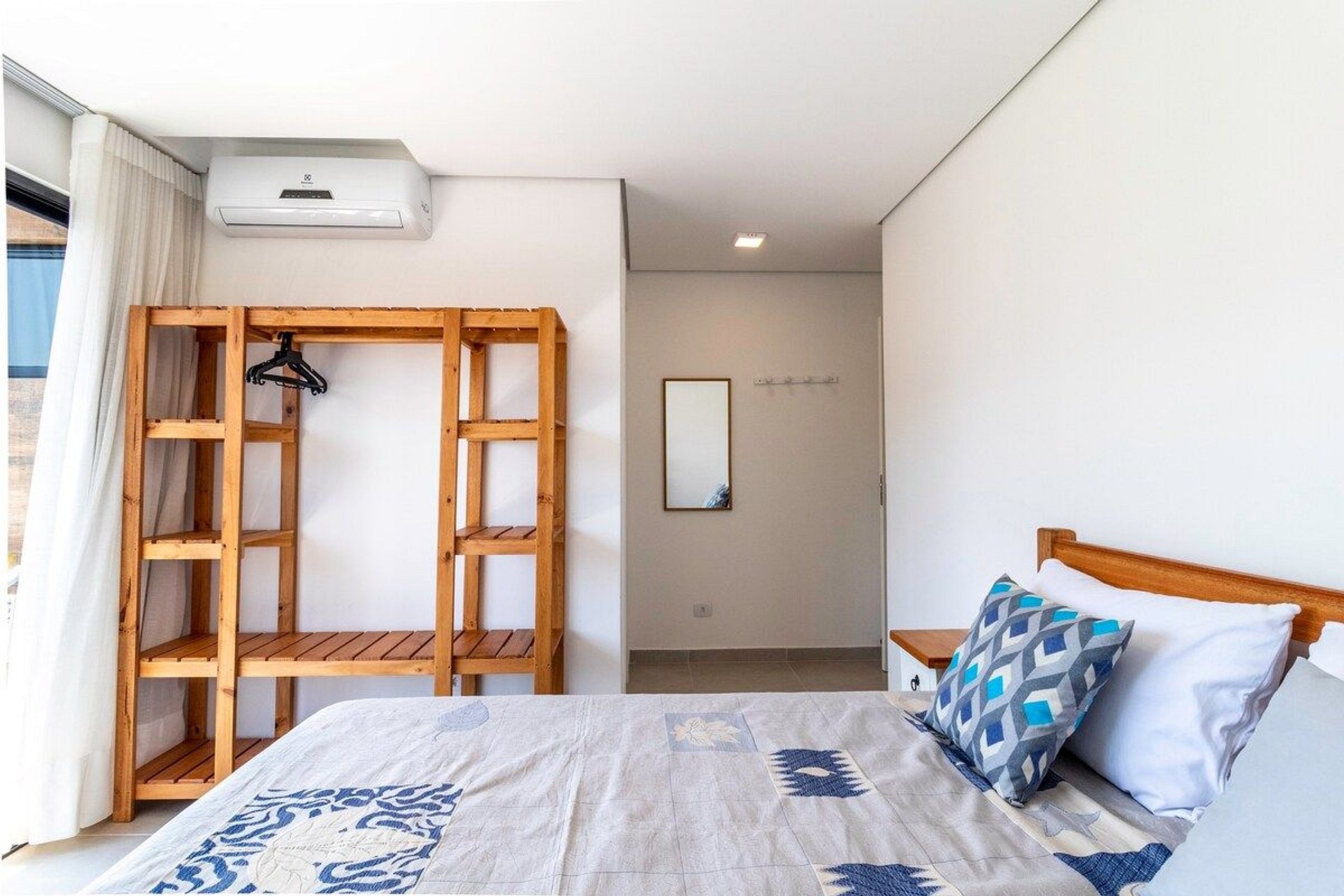 - Quarto 1 (suíte): uma cama de casal e ar-condicionado;